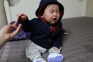 율이는 열이 높았던터라 징징대고 있었고 잡고있는게 더욱 답답했는지