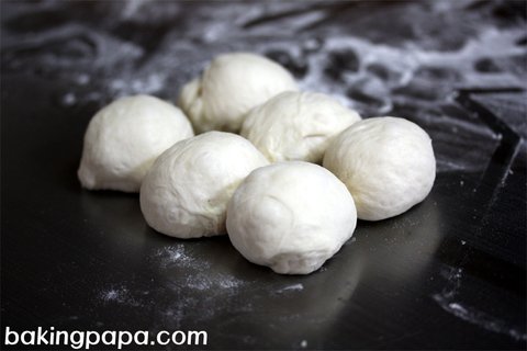 1차발효가 끝난 반죽을 50g으로 분할하여 동글리기 해줍니다.