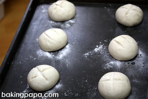 반죽 윗면에 1~2mm깊이로 칼집을 내어줍니다..(십자모양,11자 모양)