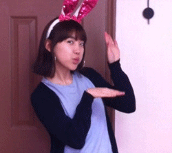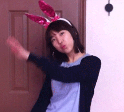 손이 토끼귀인 것처럼 팔랑팔랑 느낌으로! 산다라처럼 살짝 허리를 왼쪽 오른쪽 통통!