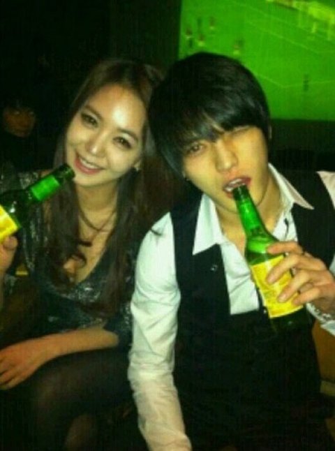공개된 사진 속에는 김재중이 강예빈과 함께 술병을 들고 깜찍한 포즈를 취하고 있다. 사진을 찍었던 날은 김재중의 생일이었다고.