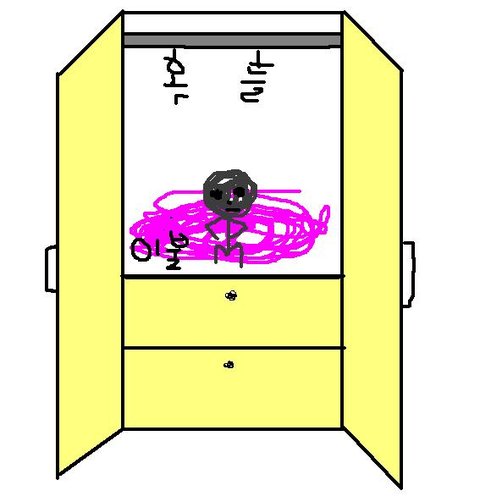 이 귀신은 제가 장농문을 열면 쭈구려서 "안녕?"이라는듯이 절 쳐다보고 있어요 ㅋㅋ