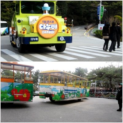 태종대 입구에서 ..조금만걸어올라가면.. 긴 귀여운 열차(?)가 보인다..