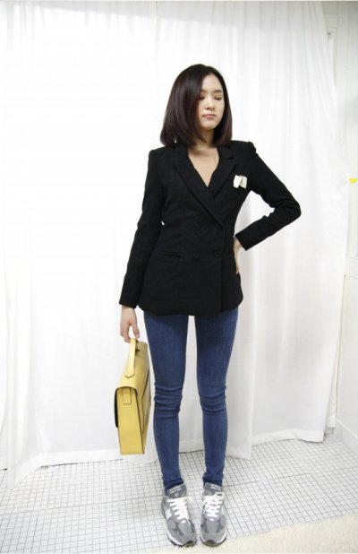 톡톡튀는 컬러의 자켓으로 매치해 새내기의 풋풋함과 여성미를 느낄 수가 있는 코디.