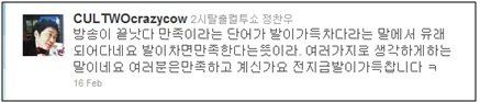 그런데 얼마전 올라온 글! 방송이 끝난후 실시간으로 트위터에 이런 글을 적어놓았어요.