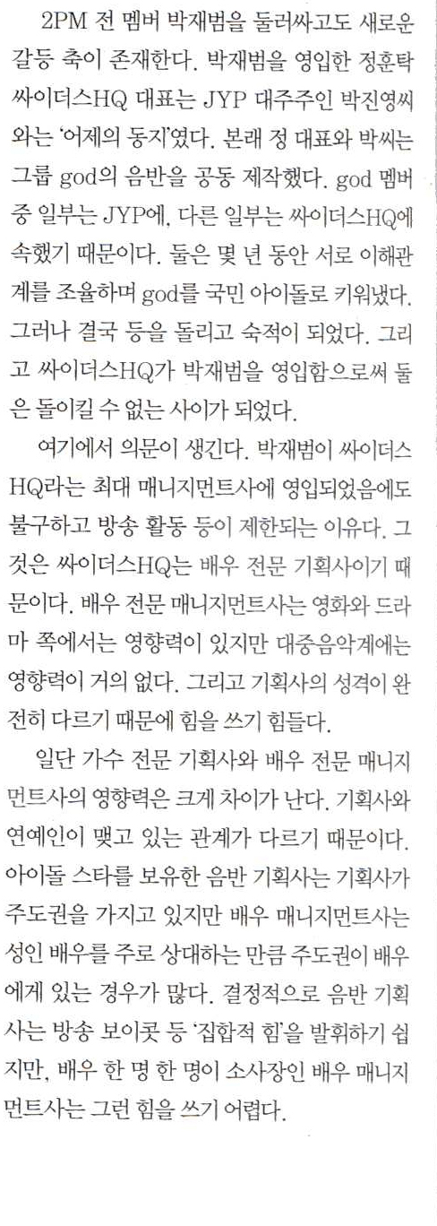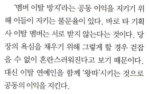 기획사들간의 담합, 권력다툼에 관한 기사를 다루면서 꺼낸 예시였다.