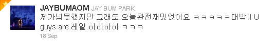 더구나 공연이 끝나고 재범의 트윗은 한없이 밝기만 했다.