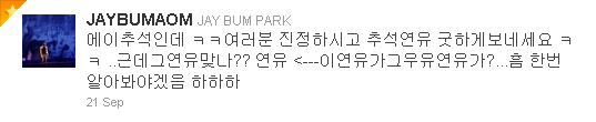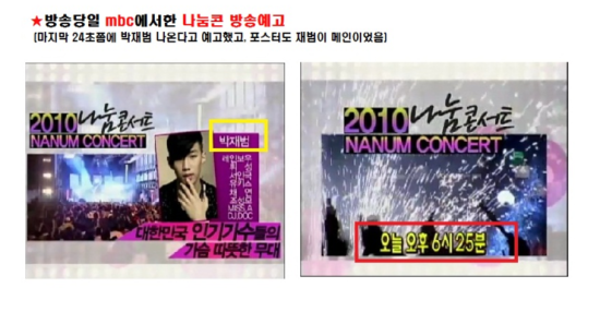작년 추석 연휴, 결국 나눔콘서트(MBC)에 재범의 무대가 방송되지 않았고, 트위터에서 소동이 났다.