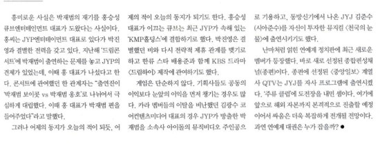 ▼ 포스팅하고 다음날 바로 나온 JYP, 문산연 공문 관련 기사