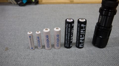 왼쪽부터 AAA, AA, 18650 사이즈. aimai는 회사 이름입니다. 왠 듣보잡 회사인가 싶겠지만 슈어파이어 같은 회사는 너무 비싸더라구요.