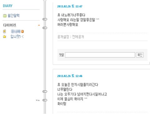 다이어리까지다쓰고 동생의 다시태어난 홈피가 완성됨 ㅋㅋㅋㅋ