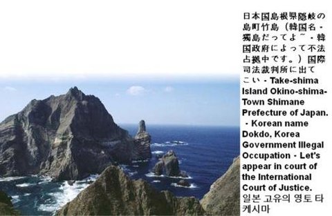 The user uploaded photograph regarding Dokdo (독도, Dokdo-ri, Ulleung-eup, Ulleung-gun, Gyeongsangbuk-do 799-805, South Korea) contains a caption that includes information about Dokdo that is seriously BIASED and WRONG. It says ”Take-shima Island Okino-shima-Town Shimane Prefecture of Japan. - Korean name Dokdo, Korea Government illegal occupation-let’s appear in court of the international court of justice“ in three different languages, Japanese, English and Korean. Dokdo is the easternmost territory of Korea and situated 87.4km to the southeast of Ulleungdo Island. PLEASE REMOVE THE CAPTION CONTAINING SERIOUSLY BIASED AND WRONG INFORMATION REGARDING DOKDO AS SOON AS POSSIBLE. THANK YOU