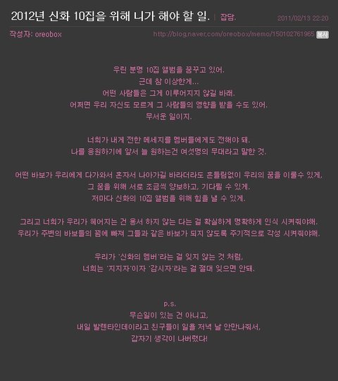 " 나는 더이상 동방신기를 지켜줄 수 없으니 너가 대신 지켜줘.. "