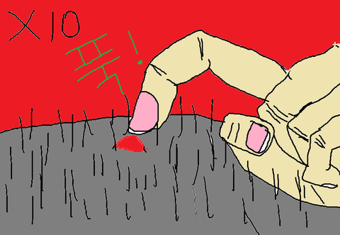 고통 1 . 머리를 긁다가 여드름을 긁었을때.(드드득 드드득, 파악 앍!!)