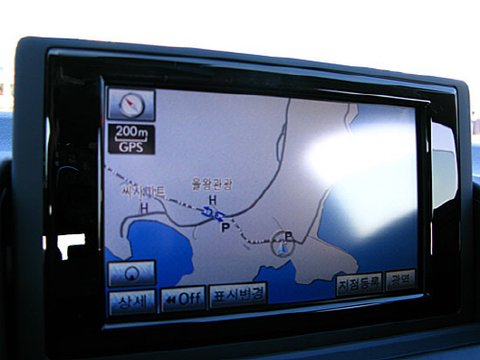 8인치 모니터는 접을 수도 있고 틸팅도 가능합니다. 근데 8인치 치고는 그리 커 보이지는 않더군요. 내비게이션 맵이나 다른 메뉴의 폰트가 예쁘지도 않고 고급스럽지도 않네요. 시트는 적당히 탄탄하고 운전대에는 열선 기능도 있습니다.
