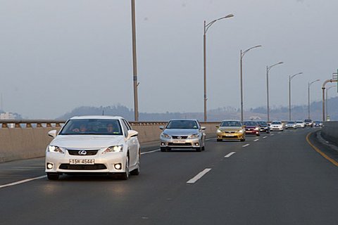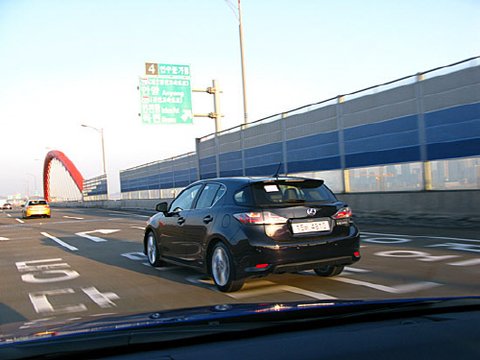 고속 주행 안정성은 좋더군요. 유럽차만큼은 아닐지라도 다른 렉서스보다는 한결 낫네요. 직진 안정성도 좋구요. 그리고 렉서스답게 방음을 잘했습니다. 같은 파워트레인의 프리우스는 정말 시끄럽거든요. 하체는 댐퍼 스트로크가 짧긴 하지만 기본적으로는 부드러운 승차감을 제공합니다. 브레이크는 초기 응답이 민감하구요.