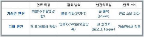 디젤 엔진의 장점은 가솔린 엔진에 비해 적은 연료를 소모하면서도