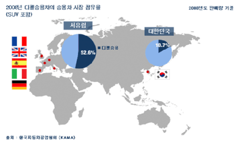 때문에 유럽의 경우에는 디젤 자동차의 점유율이