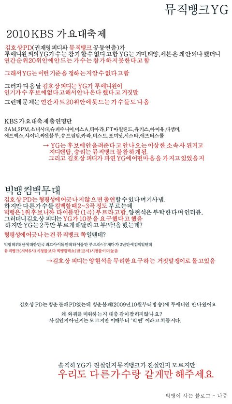 뮤직뱅크,YG 뭐가 맞는진 본인들만 알겠지만