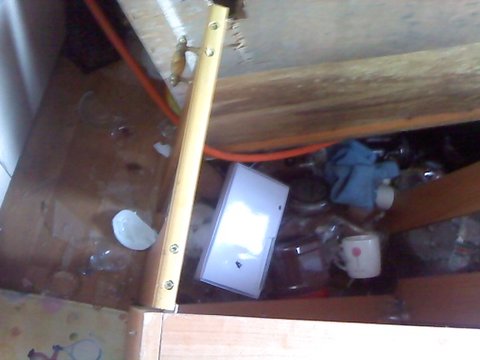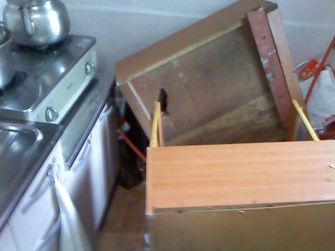 무너진 찬장이 부엌을 정ㅋ벅..