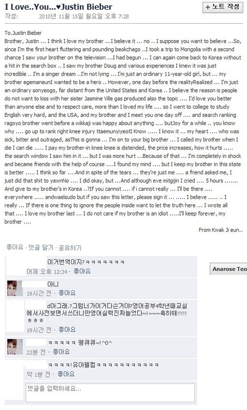 Brother, Justin ... I think I love my brother ...I believe it ... no .. I suppose you want to believe ...So, since I'm the first heart fluttering and pounding beokchago ..I took a trip to Mongolia with a second chance I saw your brother on the television ...I had begun ... I can again come back to Korea without a hit in the search box .. I saw my brother Doug and various experiences I knew it was just incredible .. I'm a singer dream ..I'm not lying ... I'm just an ordinary 11-year-old girl, but ... my brother egemaneunI wanted to be a hero .. However, one day before the realityRealized ... I'm just an ordinary sonyeogo, far distant from the United States and Korea .. I believe the reason is people do not want to kiss with her sister Jasmine Ville gas produced also the topic .... I'd love you better than anyone else and to respect care, more than I loved my life .... so I went to college to study English very hard, and the USA, and my brother and I meet you one day off .... and search ranking ragoyo brother went before a wikkaji was happy about anything .... butJoy for a while .. you know why .... go up to rank right knee injury ttaemunyiyeotI Know ..... I know it ... my heart .... who was sick, bitter and outraged, asThis is gonna ... I'm on to your big brother ... I called my brother when I die I can die ..... I pay my brother-in knee knee is distended, the price increases, how it hurts ..... the search window I saw him in it ... but I was more hurt ...Because of that ... I'm completely in shock and became friends with the help of course ....I found my mind .... but I keep my brother in this state is better ..... I think so far ....And in spite of the tears ... they're just me .... a friend asked me, I just did that shit to yawnNo .... I did okay, but ...And although eve mitgijin I cried .... 5 hours ....... And give to my brother's in Korea ..?If you cannot .... if i cannot really ... I'll be there .... everywhere ..... andwaelsudo but if you saw this letter, please sign it ... ..... I believe ..... .. I really ... If there is one thing to ignore the people inside want to let the truth here ... I wrote all that .... I love my brother last ... I do not care if my brother is an idiot .....I'll keep forever, my brother ....