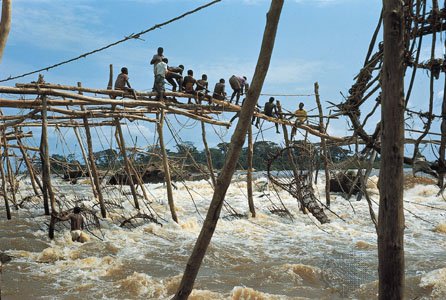 에니아족 자이르(콩고 민주 공화국) 키상가니 근처 콩고 강에서 고기잡이를 하는 에니아족 주민들