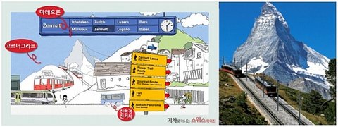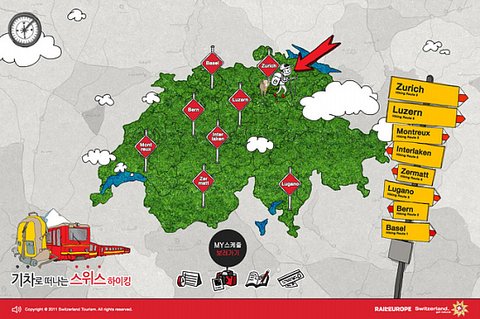 스위스의 도시정보와 열차 소개 페이지에 숨어있는 스탬프를 모아