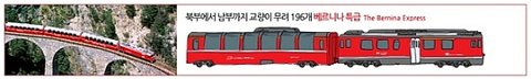 ■ 196개의 교량을 지나는 베르니나 특급 베르니나 특급으로는 시원한 북부에서 온난한 남부까지 가장 아름다운 여행을 할 수 있습니다. 눈과 빙하, 자연이 만든 야생의 협곡과 하천, 그리고 루가노의 청명함까지 만날 수 있습니다. 유네스코 세계유산에 등재 베르니나 특급, 꼭 한 번 타보세요~! + 베르니나 특급 확인
