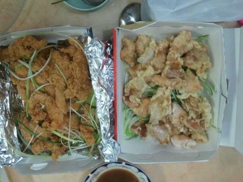 오른쪽 사진은 처음에 시켰던 물컹하고 껍데기가 절반인 색깔도 이상한 치킨입니다.