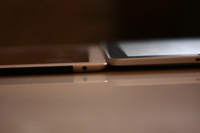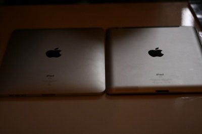 아이패드1, 아이패드 2의 뒷면 비교..2는 1에 비에 평탄함