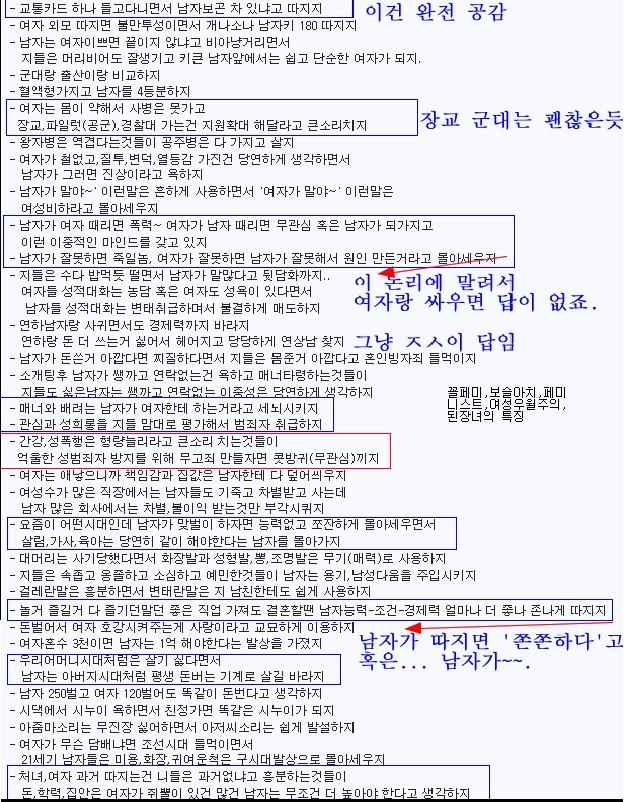 (예-여자는 약해서 군복무못한다 남자 병사 쓰레기 취급
