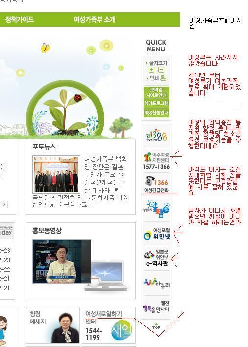 아래는 여성부가 아닌 한국의 위대하신 여성우월주의의 실태