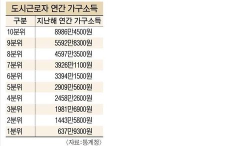 맞벌이 가정은 2명의 소득이 합쳐서 계산이 되어있겠죠