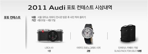 위에 경품 보이시죠? 모터쇼 현장에서 아우디를 찍어 이벤트 사이트에 올리면