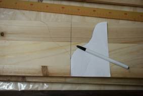 모양을 그려 잘라낸 종이를 목재에 대고 그린다