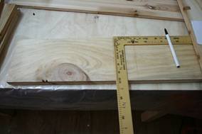 3) 판재를 길이 40.6cm와 37cm로 잘라놓는다.