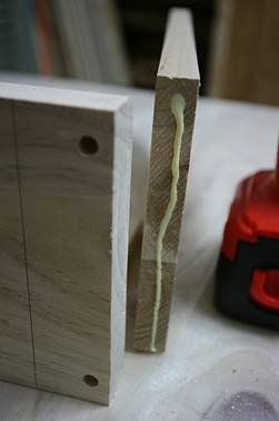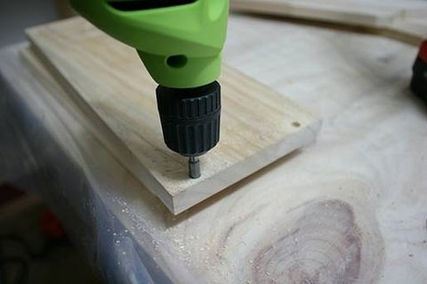 4) 잘라놓은 판재에 이중기리를 이용해 구멍을 뚫어 놓는다.