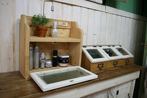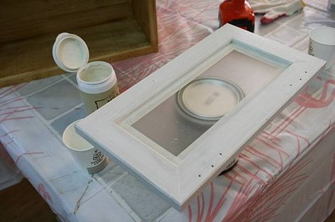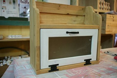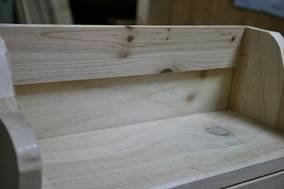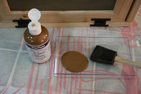 9) 우드스테인을 폼 브러시를 이용해 수납장에 바른다.