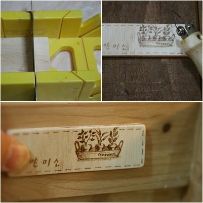 12) 액세서리로 남은 자투리목재를 잘라서 우드버닝(인두로 그림을 그리는 것)이나