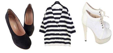 파스텔 둥근코 가보시 슈즈랑 마린 스타일 노카라 자켓, 실용적인 굽 높은 가보시끈S