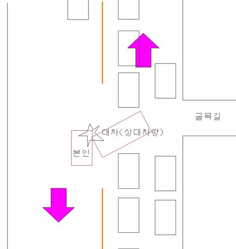 차량이 끼어든 방향이 그림에서 보는바와 같이 중앙선이 이어지는 부분이 아니라서