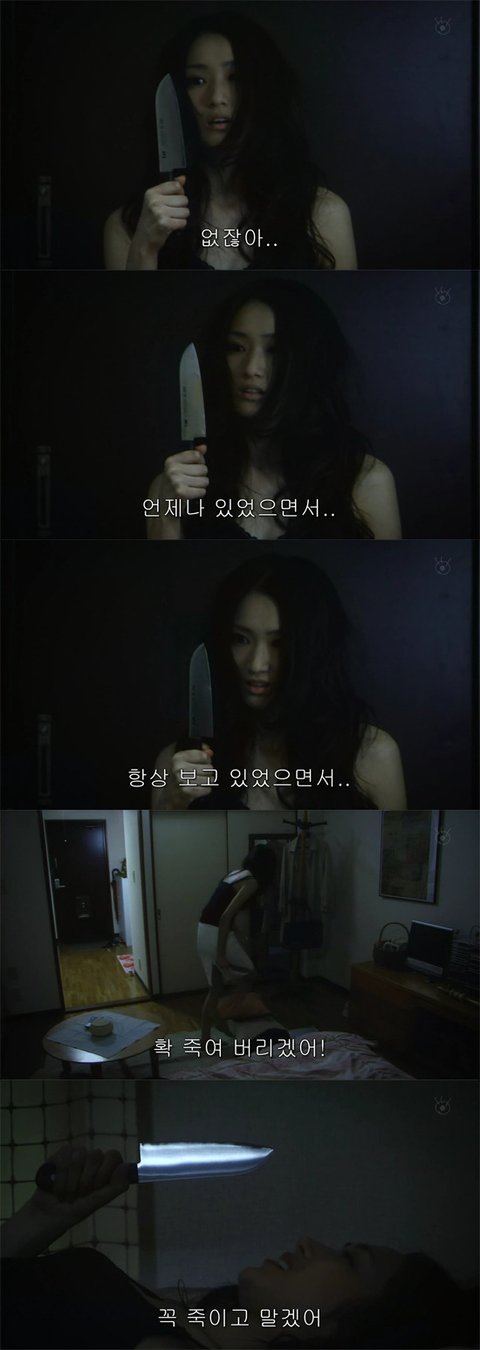 칼들고 돌아온 여자는 흥분해서 소리지르고 차고... 난리를 쳐요..