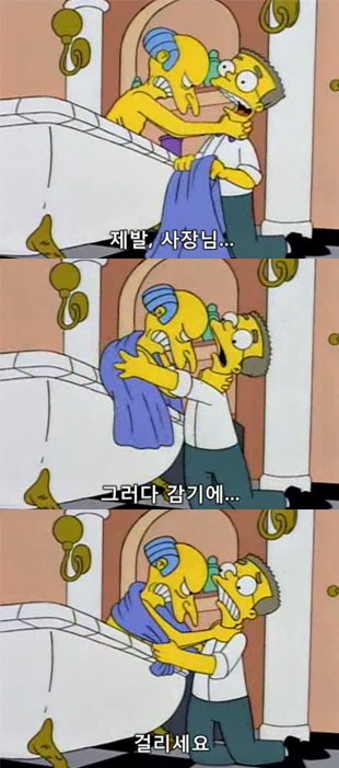 스미더스는 번스가 감기 걸릴까봐 뭐라도 걸쳐 주려고 해.