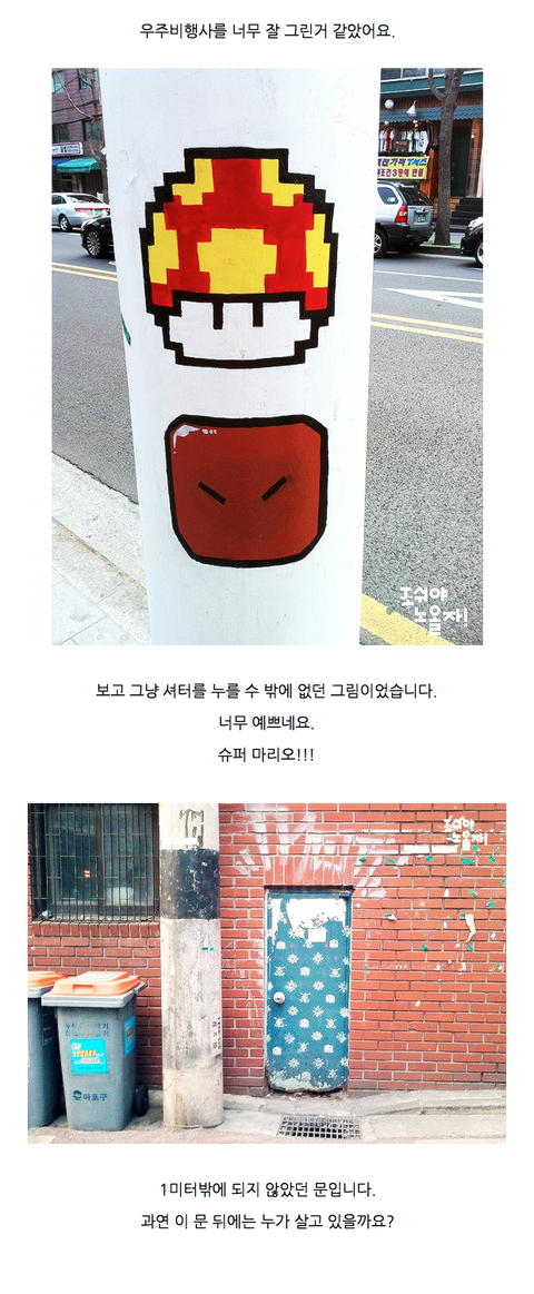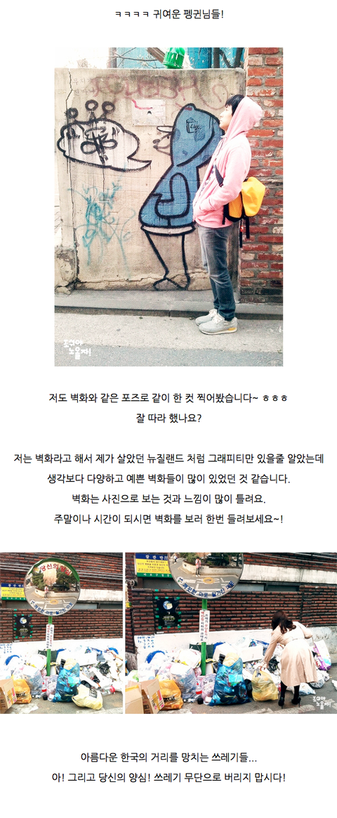 나 베플하고싶다..................... 베플되면 나도 홍대벽화거리란데 후기 인증 톡 올릴게요+ 이화마을? 대학로에있는 벽화마을도 가서 인증올려봅니다!꼭 가보고 싶기도 하니께롱. ------------------------------------------------------------ Hola, 베플됐네용!!!! 이화마을 벽화가 없어졋다니......ㅠㅠㅠㅠㅠㅠㅠㅠㅠㅠㅠㅠㅠㅠ....... 아쉬운데로 홍대벽화거리라도 다녀와서 후기를 올리겠습니다!!!! 빠른시일내에 후기 올릴게요~!!!! (아 근데...... 이렇게되면 나 베플님들 시사회장에서 수줍게 마주치게 되는건가...?)