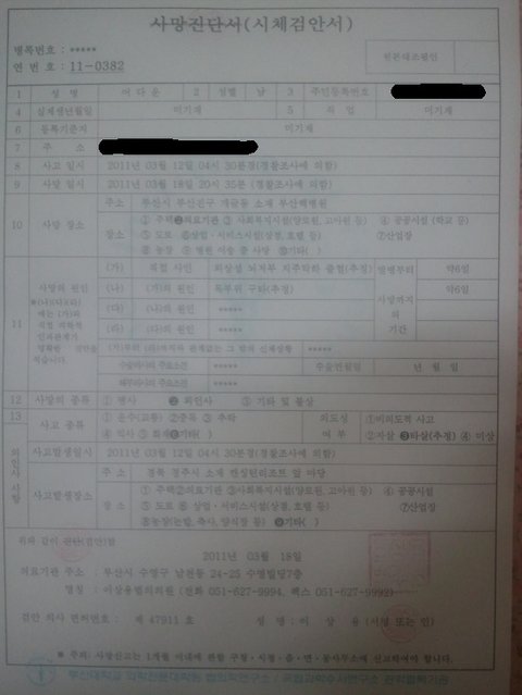 제가 올린 시체 검안서와 같은 내용이라는 사실을 확인했습니다.