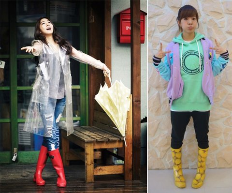 에프터스쿨 멤버들과 유인나의 레인부츠 패션