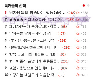 덕분에 어제는 남주편이 톡커들의선택 4위까지 올랐다가..갑자기 없어졌더라구요ㅠㅠ