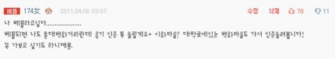 베플이 될줄이야 좀 뭔가 간절하긴했는데 베플이란거 해보고 싶은 맘에 ㅋㅋㅋ.................