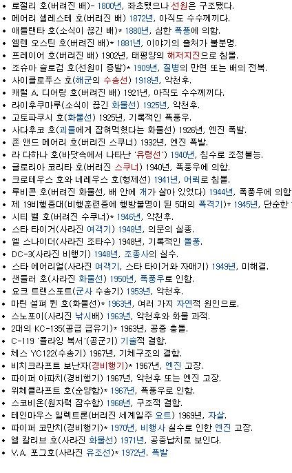 위의 확인할수 없는 사고를 당한 배와 그외 실종이나 전복된 배들