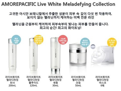 아모레퍼시픽 라이브 화이트 멜라디파잉 라인을 꾸준히 사용하고 있는데